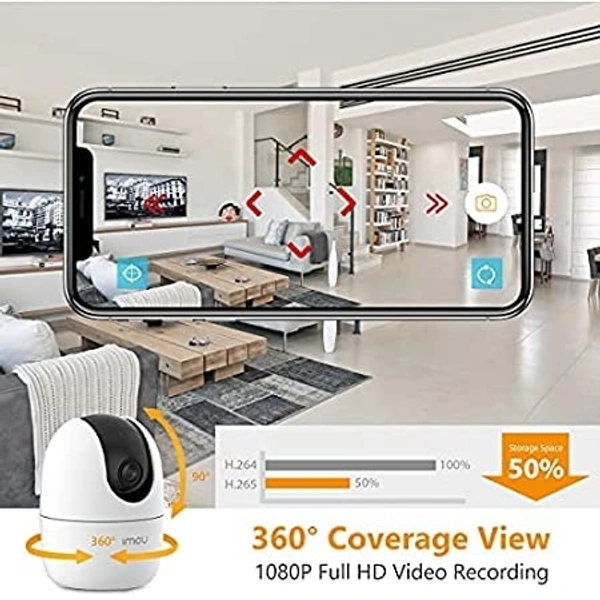Imou 360' 1080P Full HD Security Camera, Human Detection, Motion Tracking, 2-way AUDIO, Night Vision, Dome Camera with WiFi & Ethernet Connection, Alexa Google Assistant, Upto 256GB SD Card Support