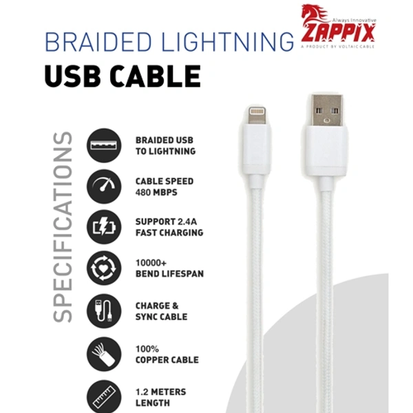 ZAPPIX LIGHTNING USB BRAIDED CABLE